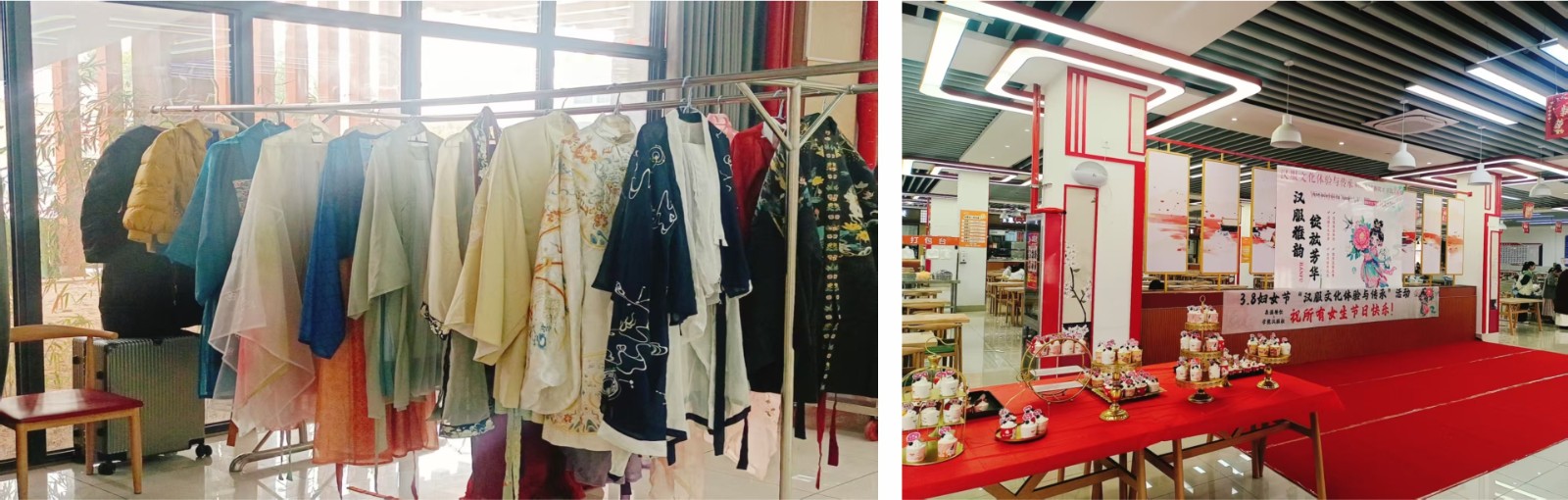 漢服社通過(guò)真實(shí)的漢服服裝展示,讓大家可以近距離感受漢服文化。